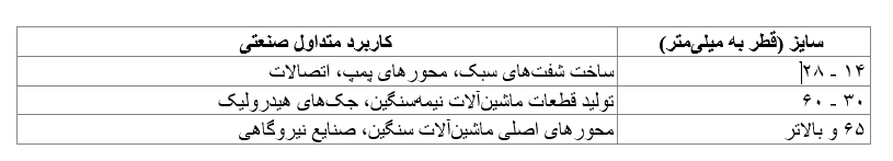 سایز (قطر به میلی‌متر) کاربرد متداول صنعتی