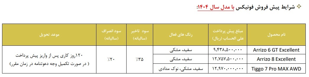 شرایط طرح پیش فروش فونیکس مرداد 1404: