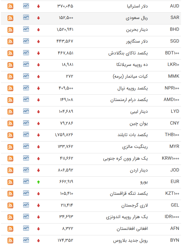 از سوی دیگر اسکناس درهم امارات نیز با کاهش به 19 هزار و 558 تومان ارزش‌گذاری شده و نرخ حواله درهم نیز 18 هزار و 988 تومان است