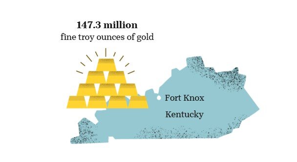 آمریکا طلا را در سایر مکانها نیز ذخیره میکند. بزرگترین ضرابخانه طلای آمریکا در «فورتناکس» واقع در کنتاکی قرار دارد که یکی از پایگاههای فوق امنیتی ارتش این کشور از آن محافظت میکند و حدود ۴ هزار و ۵۸۳ تن طلا را در دل خود جای داده است. سایر کشورها از جمله آلمان، ایتالیا و فرانسه نیز ضرابخانههای بزرگی دارند.
