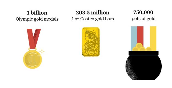 این مقدار طلا برای ساختن یک میلیارد مدال طلای المپیک کفایت میکند؛ مدالهایی که البته در واقع اساساً از نقره ساخته شدهاند!