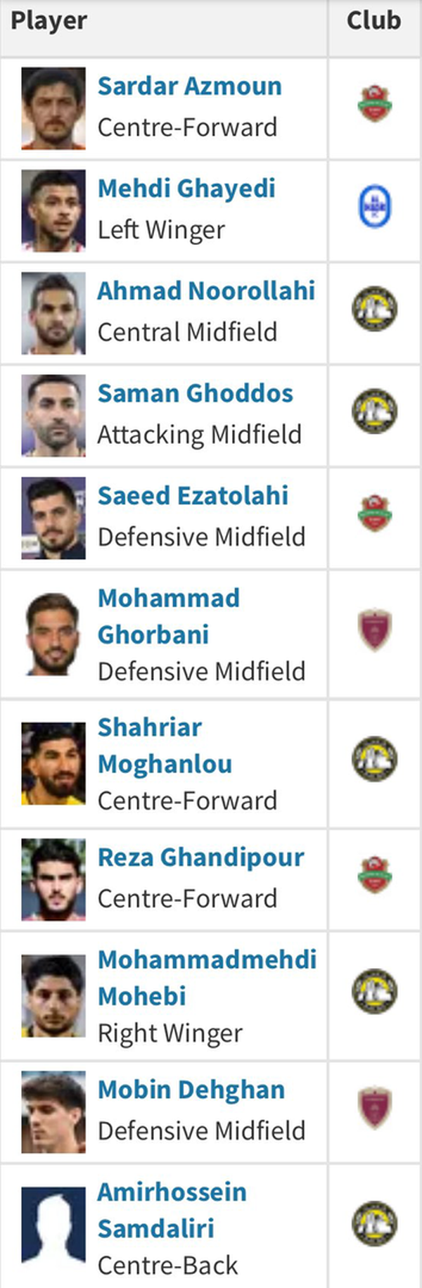 ۱۱ بازیکن ایرانی که در لیگ امارات بازی میکنند به ترتیب زیر هستند:
