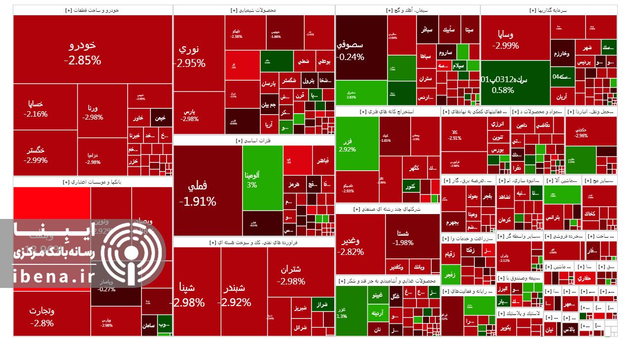 در این روز به ترتیب نمادهای فملی، وبملت، نوری و فارس بیشترین تاثیر منفی را بر شاخص کل بازار سرمایه داشتند و عامل افت بازار سرمایه شدند.