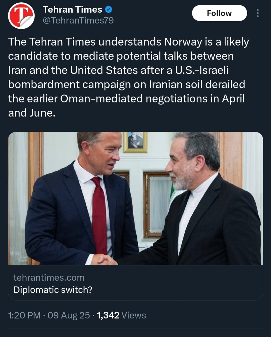 با این حال میزبانی اسلو از دور جدید مذاکرات ایران و آمریکا، از پیش از جنگ ۱۲ روزه برای چندمین بار است که مطرح میشود.