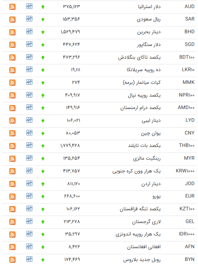از سوی دیگر اسکناس درهم امارات نیز با افزایش به 19 هزار و 596 تومان ارزش‌گذاری شده و نرخ حواله درهم نیز 19 هزار و 25 تومان است