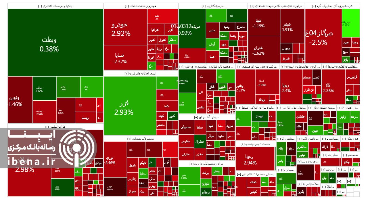 شاخص کل بازار سرمایه که روز کاری گذشته ۰.۳ درصد افت کرده بود، امروز نیز ۰.۸۵ درصد منفی شد.