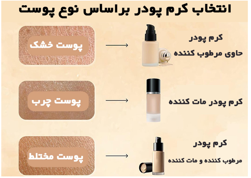 برای انتخاب کرم پودر مناسب، فقط آشنایی با انواع کرم پودر کافی نیست. نکات مهم دیگری نیز در انتخاب کرم پودر مناسب انواع پوست و انواع آرایش تأثیر دارند.