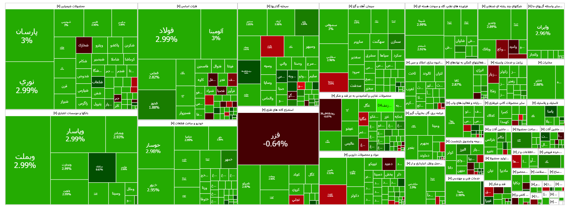 در این روز به ترتیب نمادهای فولاد، فملی، فارس و وبملت بیشترین تاثیر مثبت را بر شاخص کل بازار سرمایه داشتند و عامل رشد بازار سرمایه شدند.