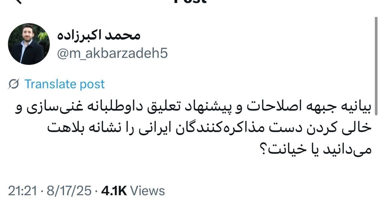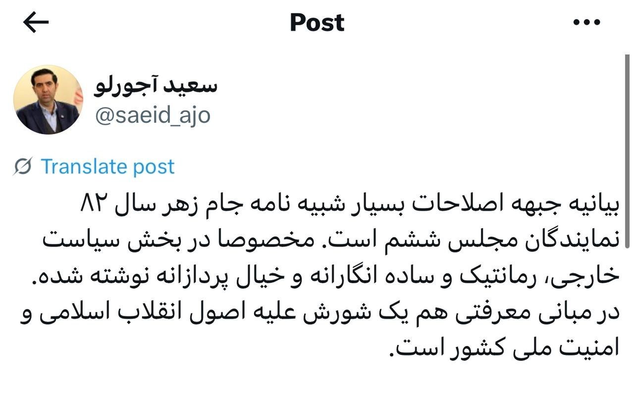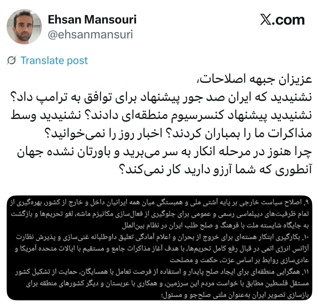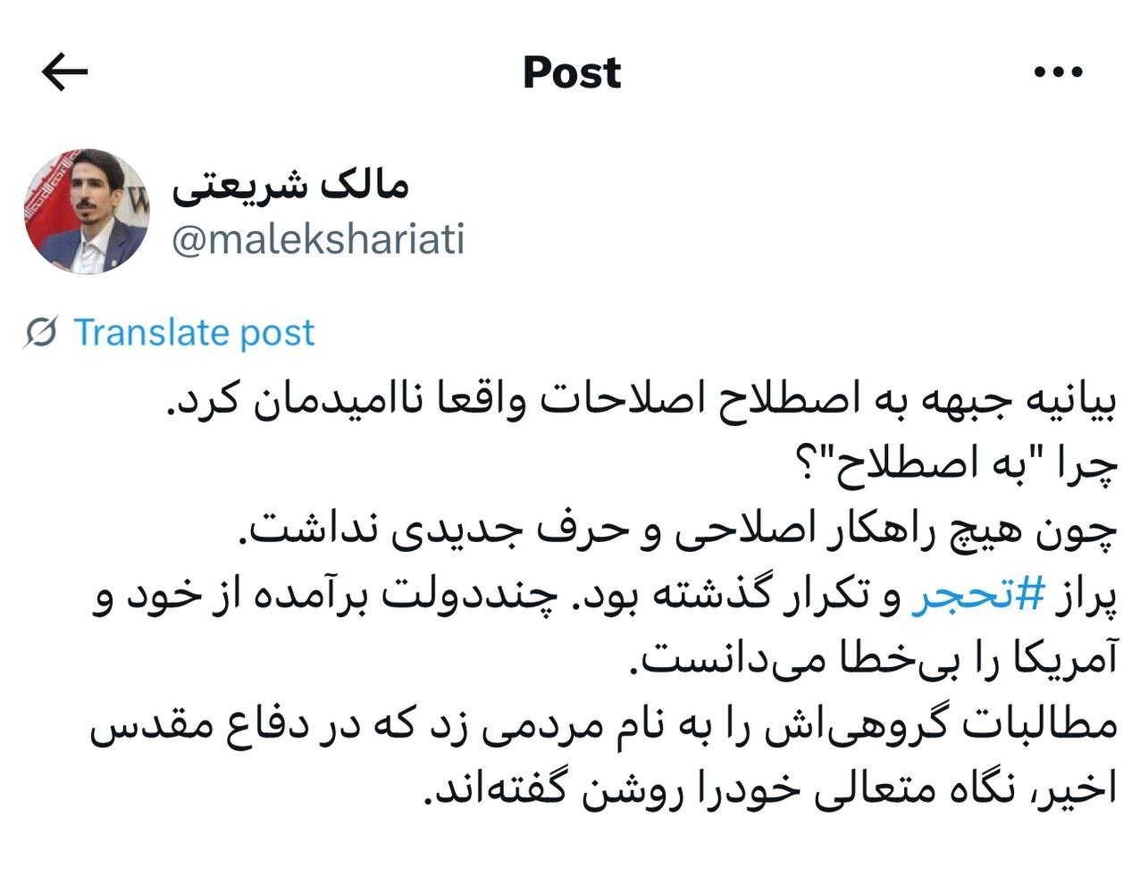بیانیهای که با واکنشهای متعددی از جمله خود اهالی اصلاحات مواجه شده و صدای خیلیها را در آورده است. این بیانیه غیر از اینکه در واقع شبیه مواضع رسمی اسرائیلیها بود، شلیکی به وفاق پزشکیان هم محسوب میشود.