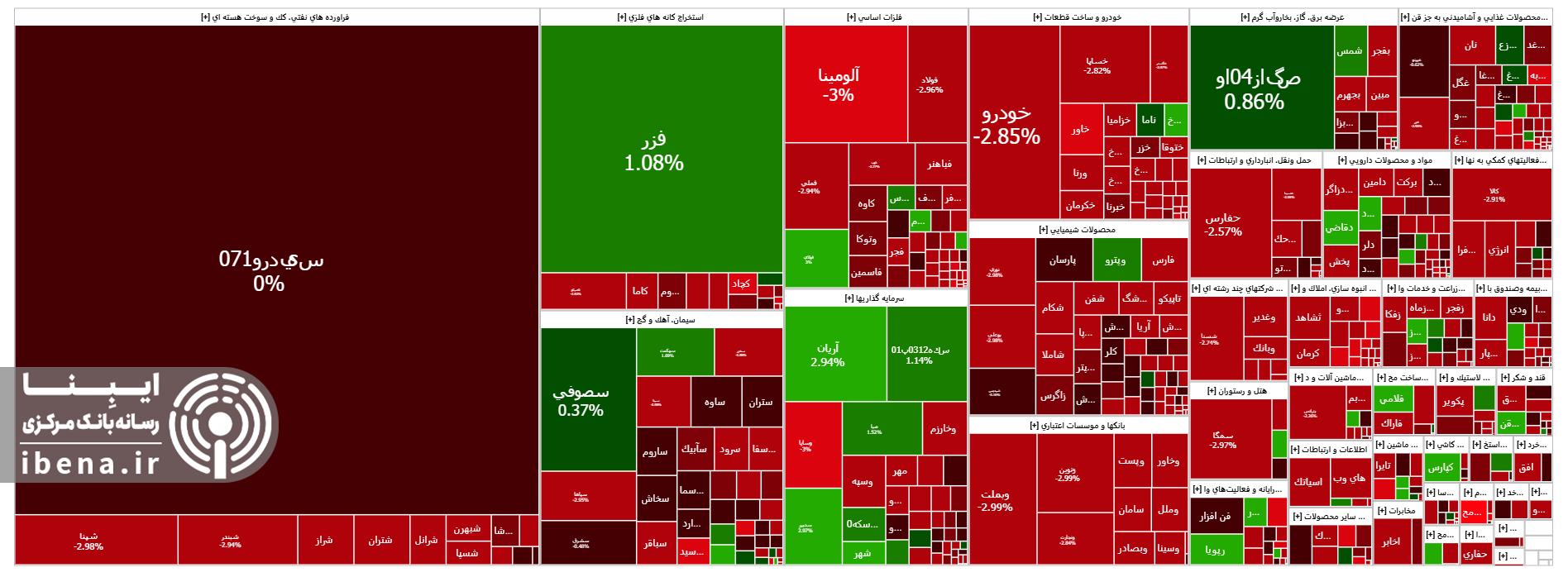 در مقابل نمادهای شپدیس و صبا بیشترین تاثیر مثبت را بر شاخص کل بازار سهام برجای گذاشتند.