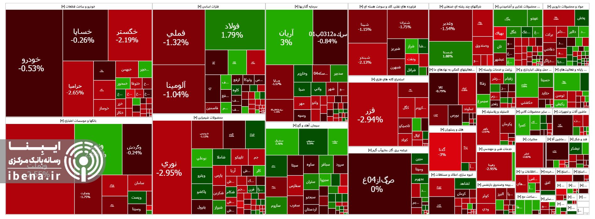 در این روز نمادهای وبملت، فملی، فارس و نوری بیشترین تاثیر منفی را بر شاخص کل بازار سرمایه داشتند و عامل افت بازار سرمایه شدند.