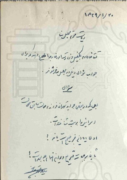 کتابخانه مجلس شورای اسلامی در سندی که به تازگی منتشر کرده ماجرای به رسمیت شناخته شدن رژیم صهیونیستی و اعتراض یکی از نمایندگان مجلس را نشان داده است.