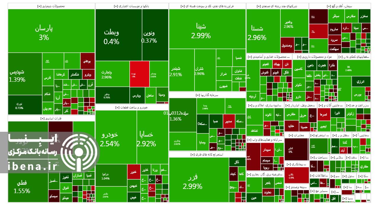 شاخص کل بورس که روز کاری گذشته ۰.۷۷ درصد رشد کرده بود، امروز نیز ۱.۰۹ درصد مثبت شد.