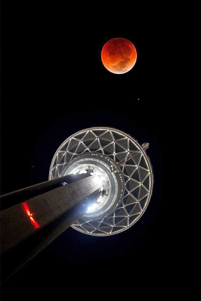 ثبت لحظه ای منحصر بفرد از ماه گرفتگی شب گذشته در برج میلاد تهران + عکس