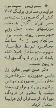 ۳۰ سال پیش یک فروند هواپیمای مسافربری تهران به کیش ربوده شده و به پایتخت رژیم صهیونیستی برده شد.
