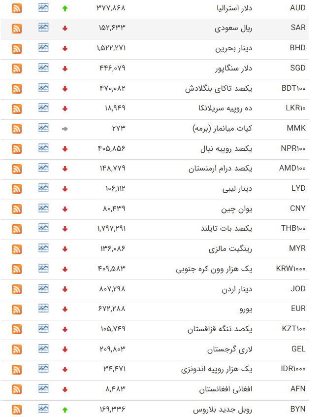 از سوی دیگر، اسکناس درهم امارات نیز با کاهش نسبت به روز کاری گذشته، 19 هزار و 588 تومان ارزش‌گذاری شده است و نرخ حواله درهم نیز 19 هزار و 18 تومان است.
