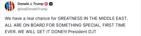 ترامپ مدعی «فراهم شدن فرصتی واقعی برای عظمت خاورمیانه» شد!