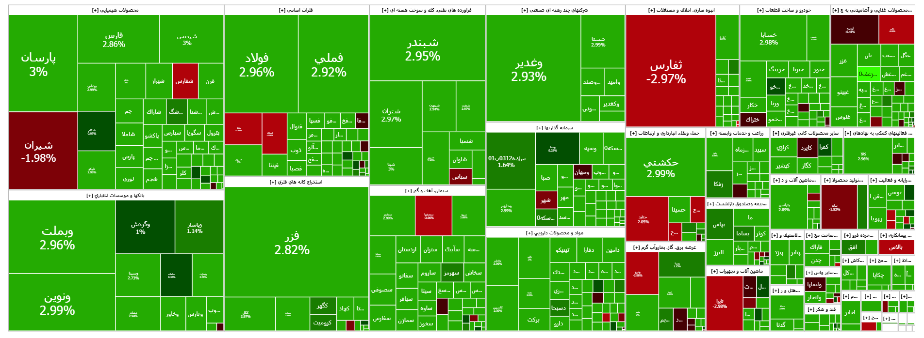 شاخص کل بورس که روز کاری گذشته ۲.۰۴ درصد رشد کرده بود، امروز نیز ۲.۳۲ درصد مثبت شد.