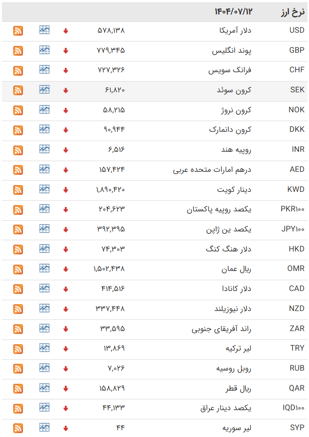 در معاملات امروز (شنبه 12 مهرماه ۱۴۰۴) مرکز مبادله ارز و طلای ایران قیمت دلار ثابت ماند در حالی که قیمت یورو با 27 تومان گران شد.
