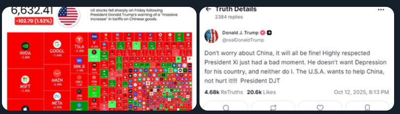 این سقوط تاریخی که بزرگترین افت از زمان ترامپ بوده، در پی اعلام لغو دیدار با رئیسجمهور چین و تهدید به افزایش «عظیم» تعرفهها رخ داد.