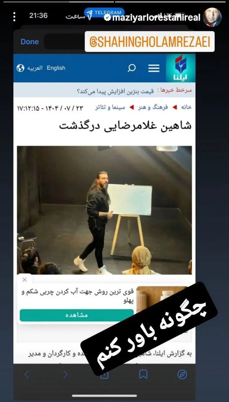 مازیار لرستانی با انتشار فیلم و استوری، اندوه خود را از از دست دادن یکی از نزدیکانش نشان داد؛ این شخص در عرصه سینما فعالیت داشت و در سن ۴۵ سالگی درگذشت.