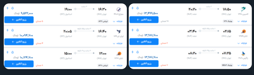 مقایسه قیمت بلیط پرواز نجف و استانبول