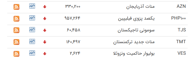 | خرید | فروش | تغییر نسبت به روز قبل | خرید | فروش | تغییر نسبت به روز قبل | ||