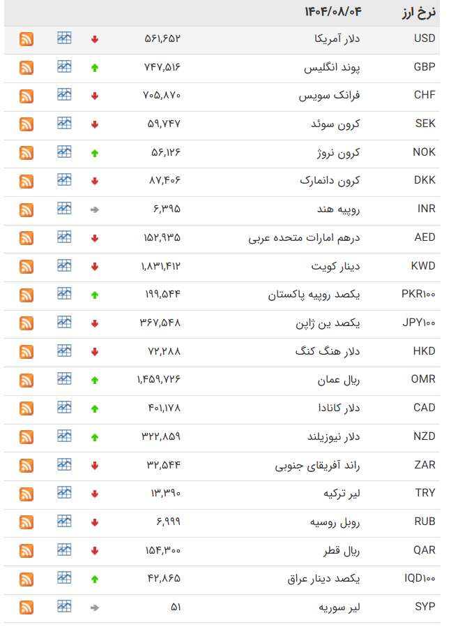 | کرون سوئد | SEK | ۷۶,۳۸۰ | ۷۷,۰۷۴ | ۹۷ | ۷۴,۱۵۶ | ۷۴,۸۲۹ | ۹۴ |