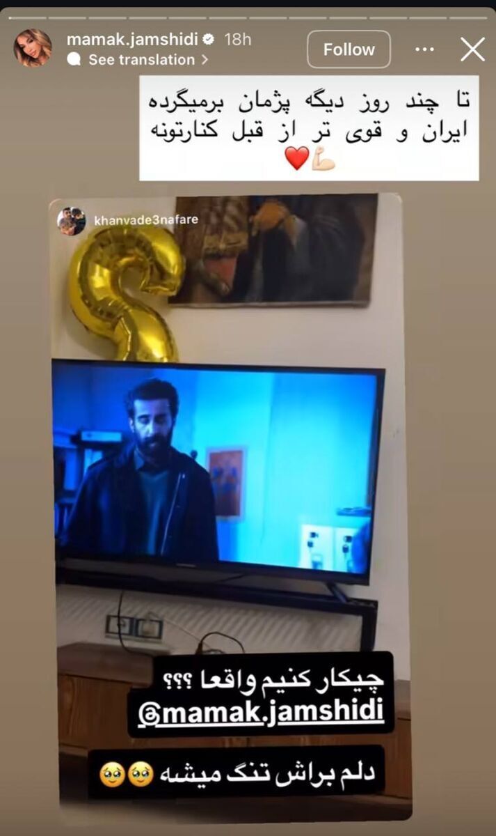 خواهر پژمان جمشیدی با انتشار یک استوری به شایعات پایان داد.