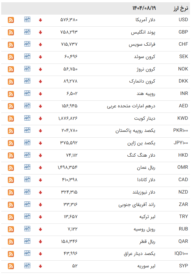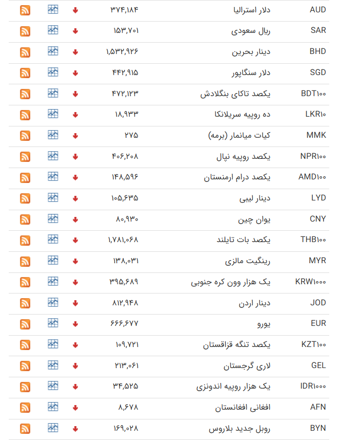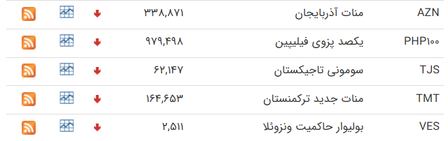| خرید | فروش | تغییر نسبت به روز قبل | خرید | فروش | تغییر نسبت به روز قبل | ||