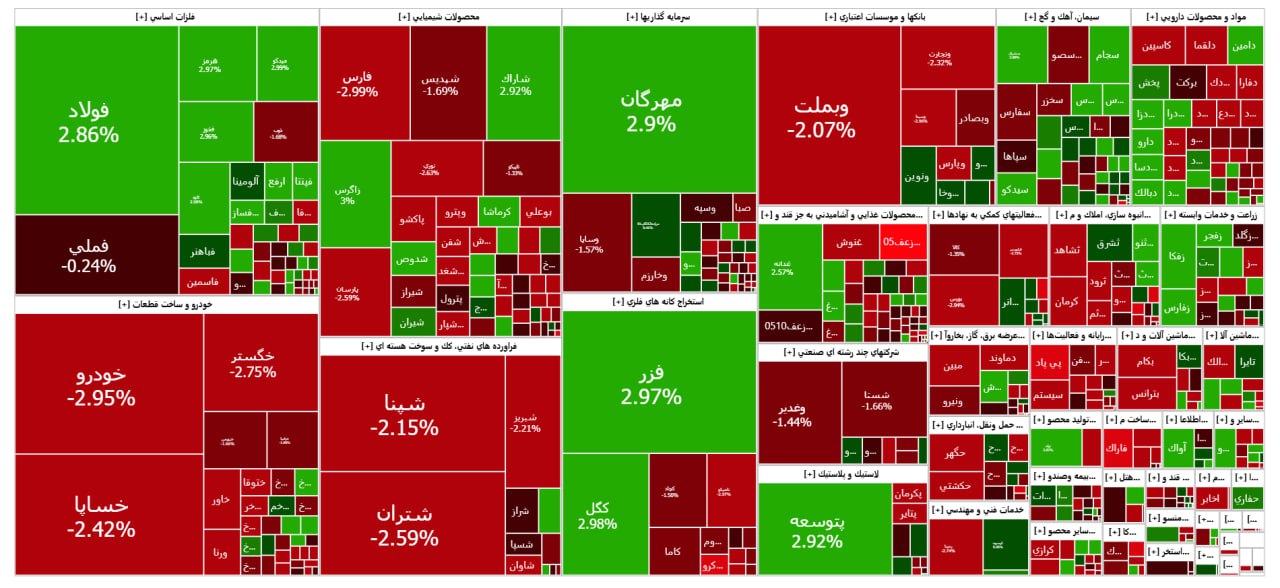 در میان نمادهای بزرگ، «فولاد»، «فملی»، «میدکو»، «فارس» و «نوری» بیشترین اثر منفی را بر شاخص کل داشتند. در مقابل، «خودرو» و «خساپا» از معدود نمادهایی بودند که اندکی اثر مثبت بر نماگر بازار گذاشتند.