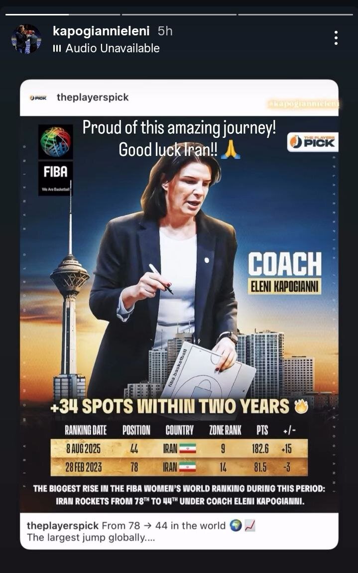 صفحه ورزشی معتبر The Players Pick در یک پست رسمی اعلام کرد که النی کاپوچیانی، سرمربی یونانی تیم ملی بسکتبال زنان ایران، همکاری خود با ایران را پایان داده و بزرگترین جهش ردهبندی تاریخ فیبا زیر نظر او ثبت شده است.