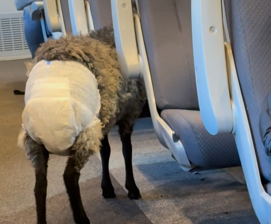مسافران قطار سریعالسیری در لهستان از دیدن گوسفندی که پوشک به تن آن کرده بودند و در راهرو قطار راه میرفت متعجب شدند.