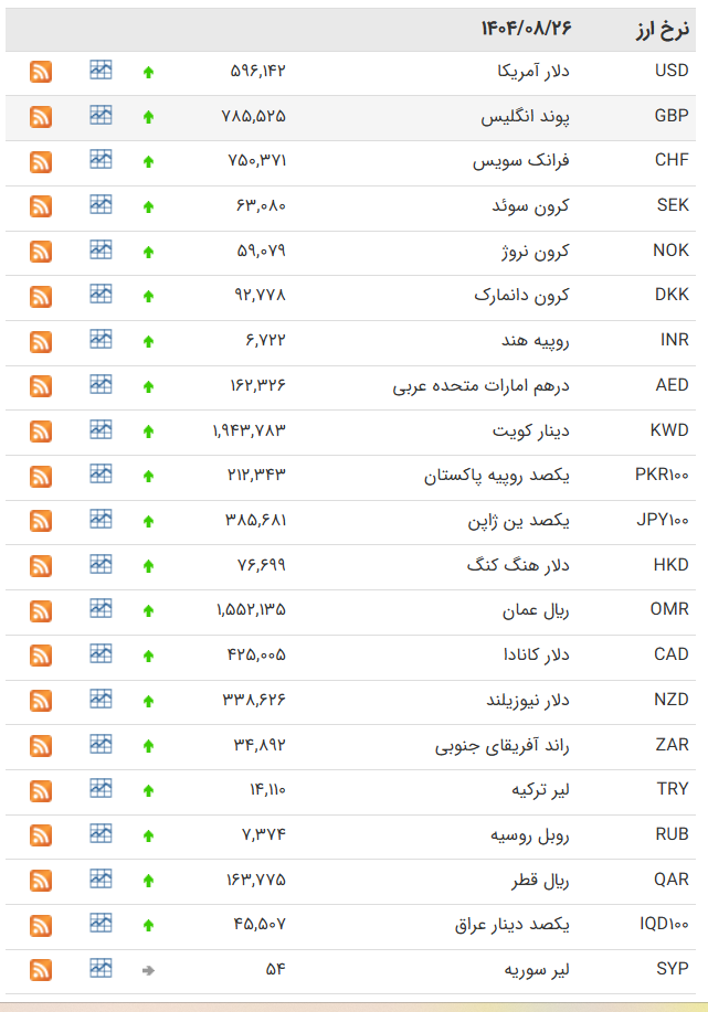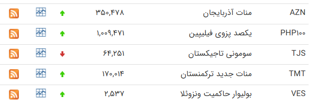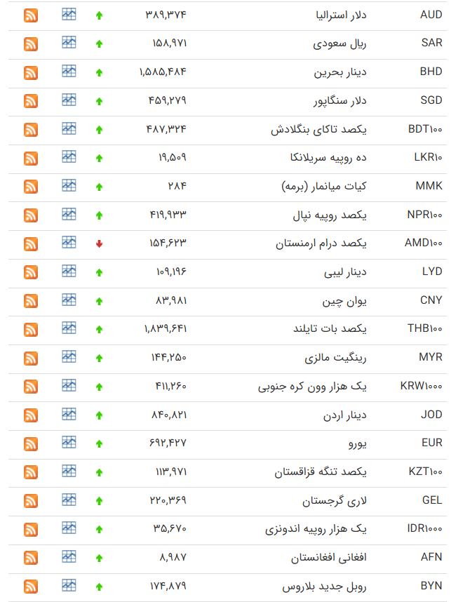 | روبل روسیه | RUB | ۹,۰۲۵ | ۹,۱۰۷ | ۲۸ | ۸,۷۶۱ | ۸,۸۴۱ | ۲۶ |