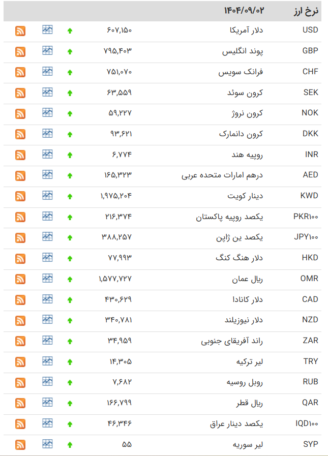 به گزارش سایت طلا، دلار توافقی (اسکناس) در بازار ارز تجاری امروز یک‌شنبه 2 آذر 1404 با نرخ 73 هزار و 977 تومان معامله میشود که نسبت به روز کاری گذشته افزایش را نشان می‌دهد. قیمت حواله دلار نیز به 71 هزار و 822 تومان رسید.