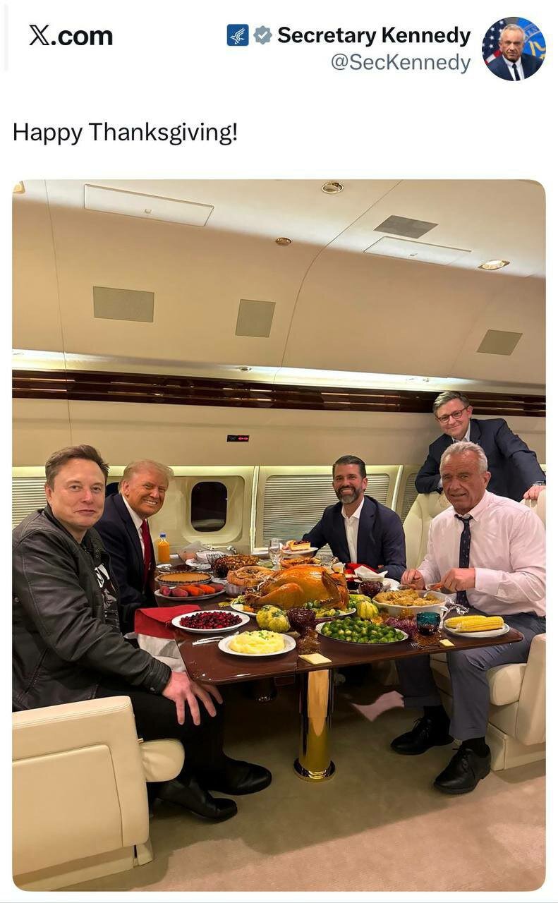 رسانه‌ها گزارش دادند دونالد ترامپ و ایلان ماسک پس از اختلافات گذشته، سرانجام در جشن شکرگزاری کنار هم نشستند و در هواپیما بوقلمون صرف کردند