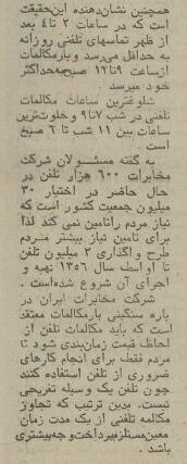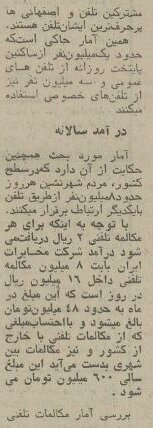 در سال ۱۳۵۴ آمار جالبی در باره تلفن و مخابرات ایران منتشر شد. با ۸ میلیون تماس تلفنی روزانه، کمحرفترین و حرّافترین مردم کشور مشخص شدند.