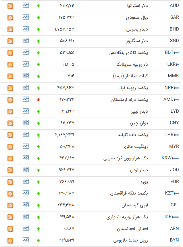 در بخش سایر ارزها، اسکناس درهم امارات امروز 19 هزار و 984 تومان و حواله آن 19 هزار و 402 تومان اعلام شده است.