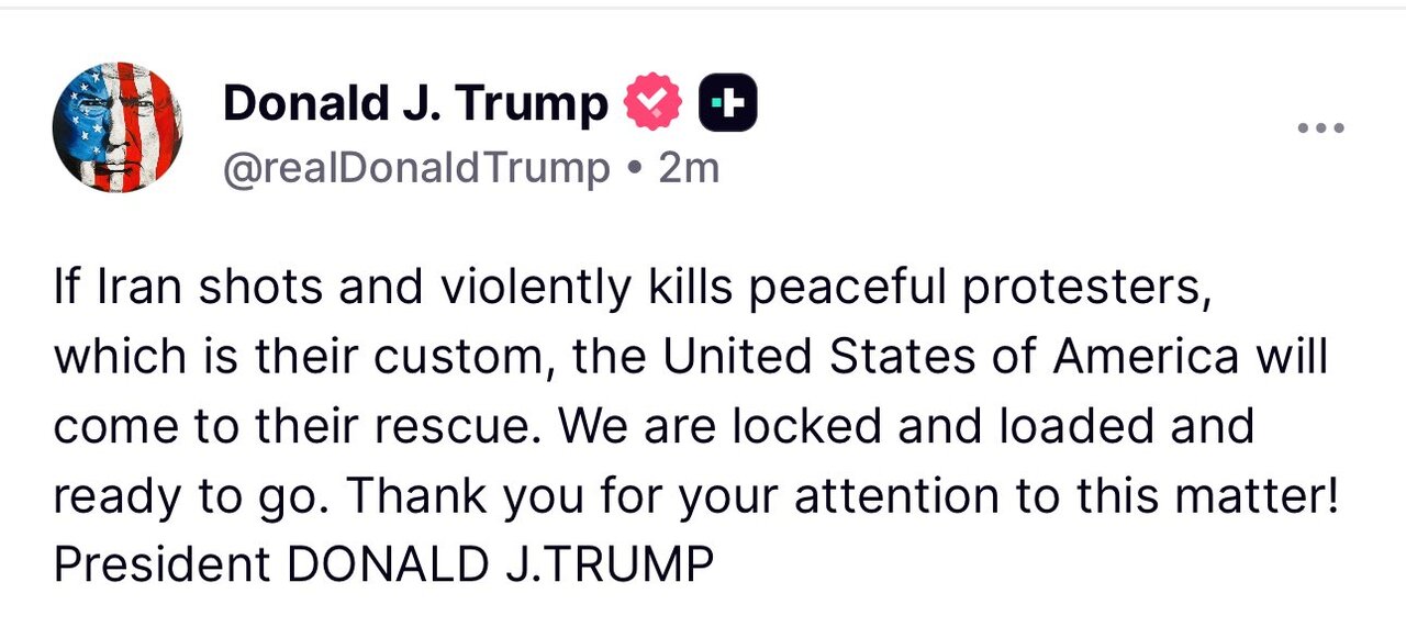 در پی اقدامات برخی عناصر آشوبطلب که تجمعات اعتراضی مسالمتآمیز به وضعیت اقتصادی و معیشتی را به صحنه درگیری مسلحانه تبدیل کنند، دونالد ترامپ در توییتی تهدیدآمیز اعلام کرد در صورت برخورد نیروهای امنیتی و انتظامی با این افراد، برای حمایت از آنها وارد عمل میشود.