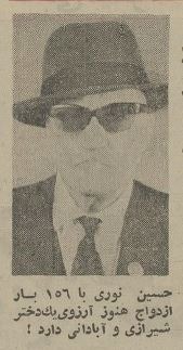 حسین نوری ۸۵ ساله از قزوین بعد از ۱۵۶ بار ازدواج همچنان از تصمیم خود برای ازدواج حرف می‌زد. روزنامه اطلاعات ۱۲ دی ۱۳۵۲ گزارشی از مردی قزوینی منتشر کرده که قصد داشت به تعداد اعداد روزهای یک سال ازدواج کند. بخش‌هایی از این گزارش را بخوانید و عکس‌های این مرد عیالوار قزوینی را تماشا کنید.