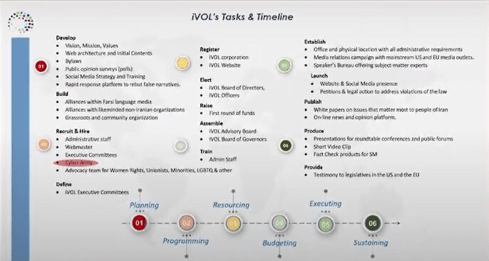 ۵۰۰ هزار دلار نیز برای تشکیل ارتش سایبری تعیین شد تا ضمن تخریب چهره جمهوری اسلامی، راه را برای محبوبیت پهلوی باز کند. حتی برای خوش خدمتی به نتانیاهو، تقدیرنامهای به او اهدا میکنند.