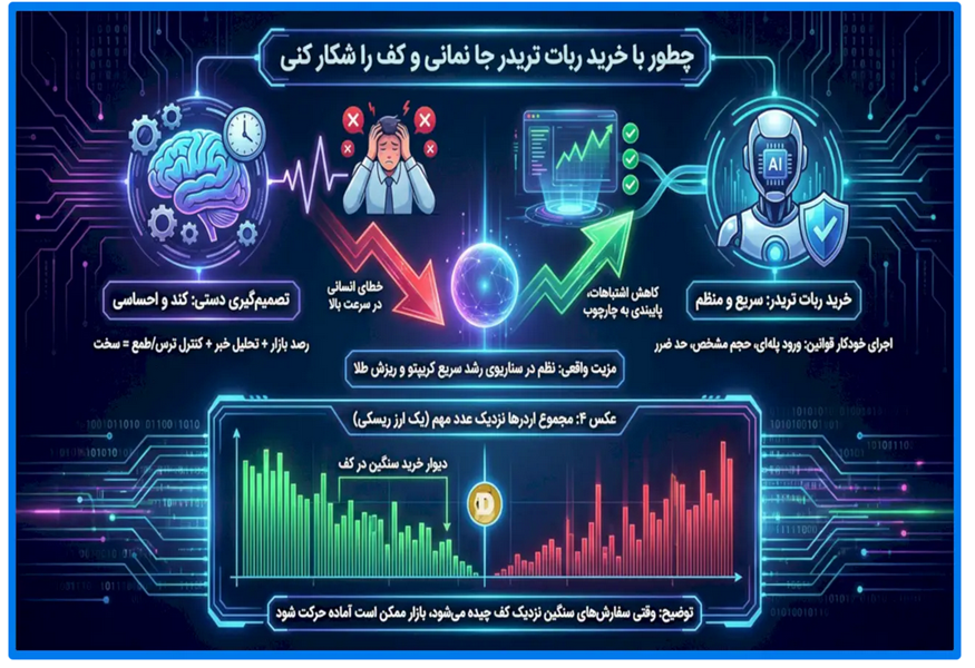 اگر هدف تو اینه که کف بازارها را شکار کنی و بعد از موج جا نمانی، باید بدانی شکار کف یعنی ورود پله ای، حد ضرر مشخص، و پایبندی به برنامه. حرفش ساده است ولی اجرای آن سخت است، چون ترس و طمع اجازه نمیده. برای همین خیلی ها دنبال راهی هستند که تصمیم گیری شان کمتر احساسی باشد و بیشتر سیستماتیک. اینجا دقیقا کلمه کلیدی خرید ربات تریدر وارد بازی میشود. رفتن به سمت ربات تریدر یعنی کمک بگیری تا اجرای برنامه ات خراب نشود و تصمیم های لحظه ای تو را نابود نکند.