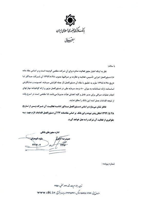 بر این اساس بانک مرکزی اخیرا با ارسال نامه ای به صرافی ها نسبت به پایان مهلت تعیین شده تا 28 مرداد ماه تذکر و به آنها اخطار داده است که در صورت عدم تطبیق با دستورالعمل جدید فعالیت آنها بعد از 28 مرداد ماه امکان پذیر نبوده و برای جلوگیری از فعالیت آنها اقدام خواهد کرد.