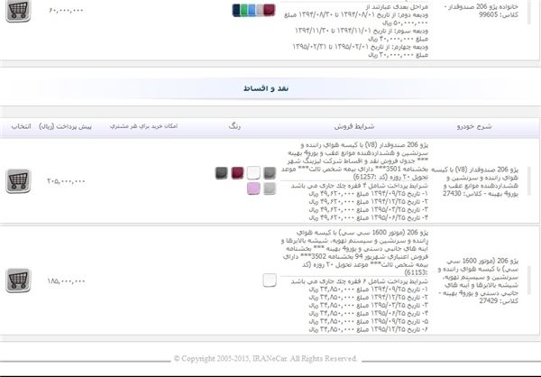این شرایط فروش در حال حاضر برای پژو 206 تیپ 2، پژو 206 صندوقدار، پژو 405 جیالایکس، رانا، سمند، ویتارا و سورن برقرار است.