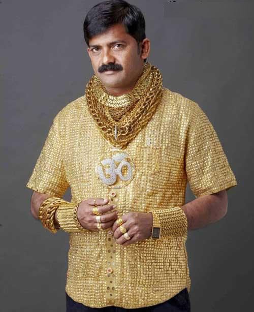 یک مرد هندی با پرداخت 14 هزار پوند برای ساخت یک لباس طلا امیدوار است توجه زنان و دختران را به خود جلب کند.