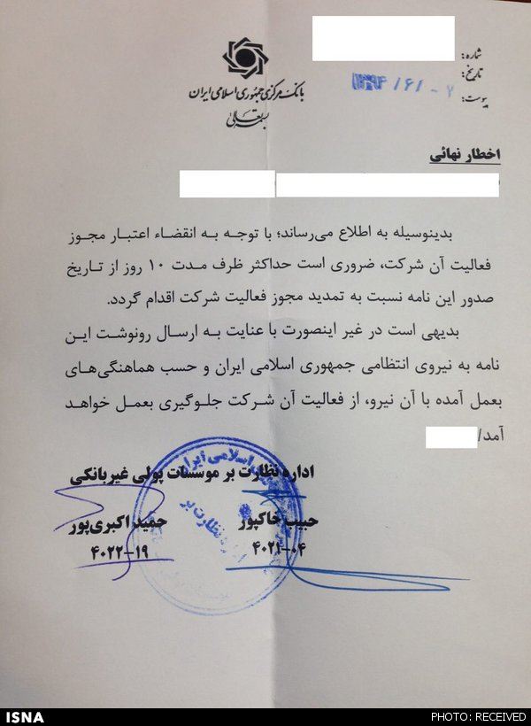 از سویی دیگر با اتمام مهلت 10 روزه یعنی 12 شهریورماه امسال ، فعالیت صرافانی که مراجعه نکرده اند به پایان رسیده و پلمب خواهند شد.