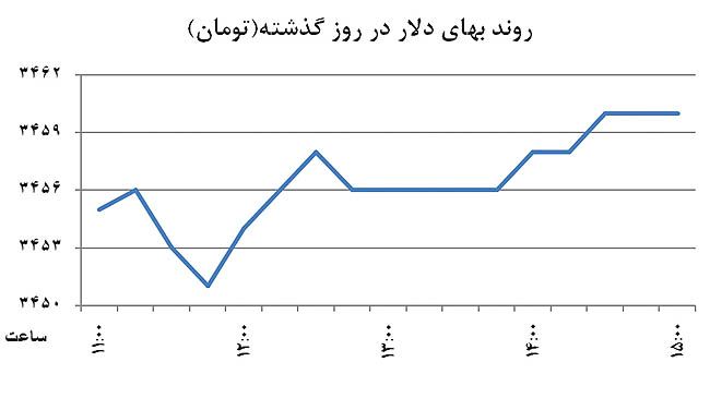 دلار دومین روز هفته را با قیمت 3455 تومان شروع کرد که 5 تومان از قیمت عصر شنبه ارزانتر بود. در حالی که مطابق روزهای یکشنبه بانک مرکزی تغییری در نرخ رسمی ارز ایجاد نمیکند، نرخ غیر رسمی ارز در سایه بیم و تردیدهای حاکم بر بازار تا بهای 3451 تومان پایین رفت، اما بعد مجددا تا قیمت 3460 تومان افزایش یافت. چنان که اشاره شد کاهش روز یکشنبه مربوط به ادامه اثرگذاری پیش رفتن توافق هستهای و افزایش این روز مربوط به مقاومت معاملهگران و همچنین برخورد دلار با سطح حمایتی 3450 تومان بود.