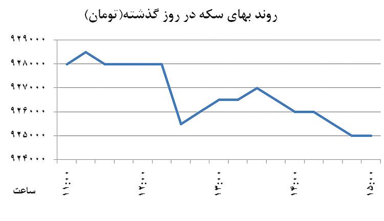 در پنجمین روز هفته، سکه سومین کاهش متوالی خود را تجربه کرد و با 8 هزار تومان کاهش به قیمت 925 هزار تومان رسید. کاهش ارزش این فلز گرانبها بیشتر ناشی از ریزش اونس در بازارهای جهانی بود. رسیدن طلای جهانی به بهای 1117 دلار تا ساعت 3 بعدازظهر موجب افت 8/ 0درصدی سکه شد.
