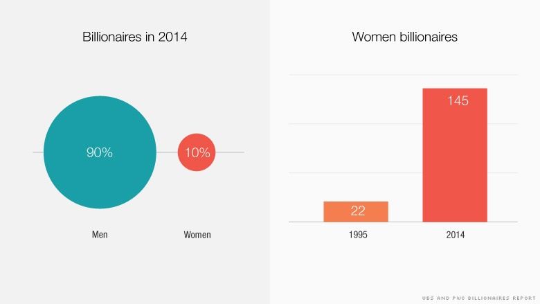 آمار نشان می دهد در حال حاضر ۱۴۵ زن در دنیا میلیاردر هستند که نسبت به سال ۱۹۹۵ که تعداد آنها ۲۲ نفر بود، رشد چشمگیری داشته است.