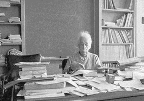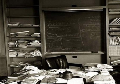 یکی از بزرگترین دانشمندان و فیزیکدانانی که پا روی این کره خاکی نهاده است بدون شک آلبرت انیشتین است. این مرد در سال 1955 و روز 18 آوریل جان خود را از دست داد اما در همین زمان یک عکاس فرصت طلب به دفتر وی رفت و آخرین عکس را از این دفتر برداشت. این تصویر تمامی شلختگی انیشتین را نشان می دهد که کتاب ها و جزوات روی میز او پراکنده هستند.